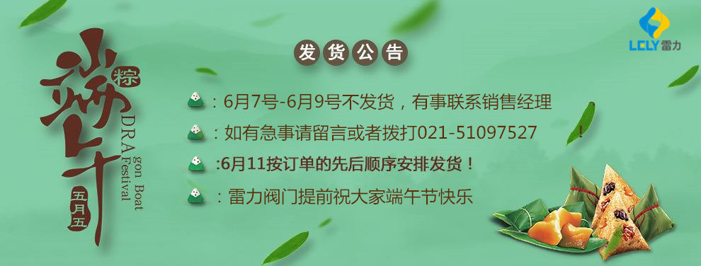 雷力閥門關(guān)于2019年端午假日期間暫停發(fā)貨通知